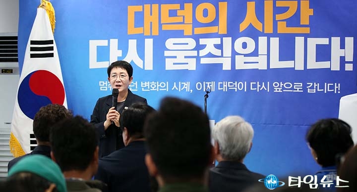 [대전타임뉴스=홍대인 기자] 박정현 국회의원(더불어민주당, 대전 대덕구)이 25일 대전 대덕구 김찬술 대덕구청장 예비후보 개소식에서 “끝까지 해내는 집요함이 필요한 시기"라며 김 후보의 추진력을 강조했다. 이날 오후 2시 대덕구 중리남로 선거사무소에서 열린 ‘든든캠프’ 개소식에는 조승래·장종태 국회의원과 허태정 전 대전시장, 6·3 지방선거 출마자, 대덕구민 등 300여 명이 참석했다. 행사는 식전 공연을 시작으로 내빈 소개, 축사, 후보 인사말, 상징 전달식 순으로 진행됐다. 박 의원은 김 예비후보에게 선거운동 점퍼를 입혀주며 본선 승리를 기원했다. 박 의원은 축사에서 “민선 7기 구청장 시절 김 후보가 시의원으로 활동하며 지역에 필요한 사업을 지속적으로 요구했다"며 “이거 지역에 필요한데 시에서 어떻게든 가져오겠다고 하면서 함께 하자고 했고 실제로 여러 문제가 해결됐다"고 말했다. 이어 “떨어진 이후 4년 동안에도 지치지 않고 계속 한 걸음씩 나아갔다"며 “가족을 돌보는 상황에서도 투지를 잃지 않고 지역을 지켜온 모습이 가슴 벅찼고 든든했다"고 밝혔다. 또 “여러분 김찬술 후보 든든하시냐"며 “대덕구에 새로운 바람을 일으킬 것이라고 본다"고 강조했다.