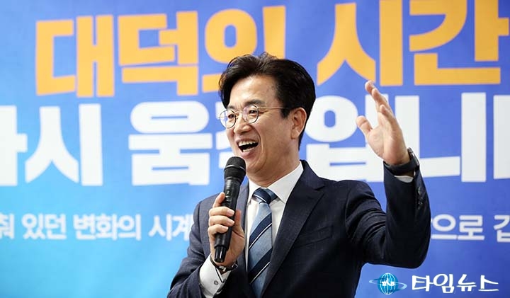 [대전타임뉴스=홍대인 기자] 더불어민주당 허태정 대전시장 후보가 25일 김찬술 대덕구청장 예비후보 개소식에서 “시장에 당선되면 가장 나를 괴롭힐 사람은 김찬술"이라며 “그만큼 집요하게 일을 하는 인물"이라고 밝혔다. 이날 오후 2시 대덕구 중리남로 선거사무소에서 열린 ‘든든캠프’ 개소식에는 박정현·조승래·장종태 국회의원과 6·3 지방선거 출마자, 대덕구민 등 300여 명이 참석했다. 행사는 식전 공연을 시작으로 내빈 소개, 축사, 후보 인사말, 상징 전달식 순으로 진행됐다. 박정현 국회의원은 김 예비후보에게 선거운동 점퍼를 입혀주며 본선 승리를 기원했고, 김 후보 자녀는 운동화를 전달하며 선거 여정을 응원했다. 허태정 대전시장 후보는 “후보 등록 이후 혼자 생각해봤다"며 “시장에 당선되면 누가 가장 나를 괴롭힐까 했는데 김찬술이 가장 먼저 떠올랐다"고 말했다. 이어 “실제로 후보가 된 만큼 끝까지 가보자"고 덧붙였다. 또 “시장 시절 4년간 함께 일하며 손발을 맞췄고 서로를 잘 알고 있다"며 “대덕에 필요한 것이 무엇인지도 잘 알고 있다"고 밝혔다. 이어 “사무실에 두 가지 표어가 있다"며 “첫째는 ‘표 없다, 나가서 뛰어라’, 둘째는 ‘선거법을 준수하는 것이 최고의 선거운동’"이라고 말했다. 그러면서 “현장에서 뛰고 원칙을 지키는 것이 중요하다"고 강조했다. 허 후보는 “김 후보가 대덕과 대전의 미래를 위해 두 발이 닳도록 뛰기를 기대한다"며 “원팀으로 함께 가겠다"고 밝혔다.