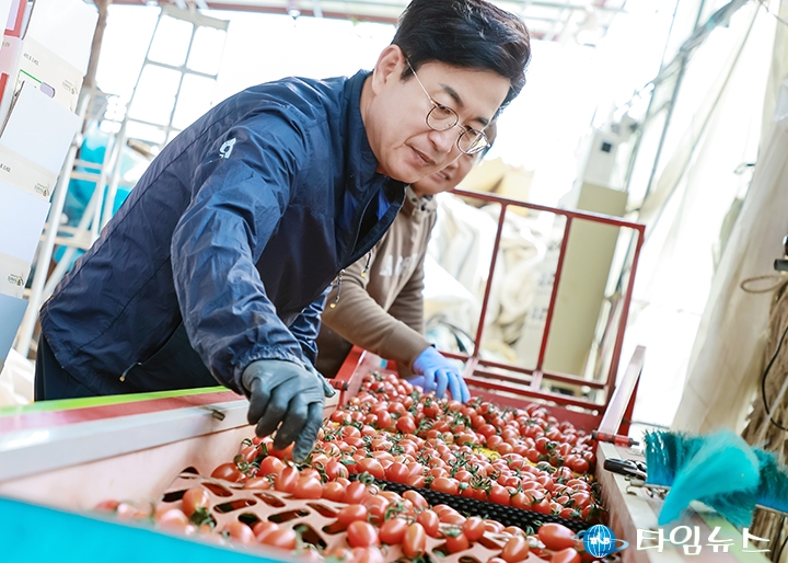 [대전타임뉴스=홍대인 기자] 허태정 더불어민주당 대전시장 후보가 25일 대전 유성구 송정동 토마토 농장에서 1시간 넘게 수확 작업을 하며 “농작물은 농부의 발걸음 소리를 들으며 큰다"고 밝혔다. 이날 방문한 농장은 약 3000평 규모로 비닐하우스 10동이 운영되는 곳이다. 허 후보는 작업복 차림으로 현장에 들어가 토마토 줄기를 제거하고 수확 작업에 직접 참여했다. 이번 방문은 대전 먹거리를 책임지는 농업인의 삶을 이해하고 현장의 노고를 체감하기 위해 마련됐다. 허 후보는 농민들과 함께 작업하며 현장의 어려움을 들었다. 농민들은 인력과 비용 부담 등 현실적인 문제를 전달하며 세심한 지원을 요청했고, 허 후보는 이에 공감하며 지속적인 관심과 지원 의지를 밝혔다. 허 후보는 작업 도중 “직접 손을 보태보니 농민들이 얼마나 많은 발자국을 남기며 정성을 쏟는지 알 수 있었다"고 말했다. 이어 “도시농업은 양적 확대를 넘어 산업과 복지가 결합된 구조로 발전해야 한다"며 “경작 공간 확보와 생산·소비 선순환 구조, 스마트 농업 기술을 통해 대전 농업의 경쟁력을 키우겠다"고 밝혔다. 허 후보는 “농민들의 정직한 노고가 정당한 보상과 미래 경쟁력으로 이어지도록 현장 중심 정책을 꼼꼼히 챙기겠다"며 “현장에서 시민의 삶을 바꾸는 답을 찾겠다"고 말했다.