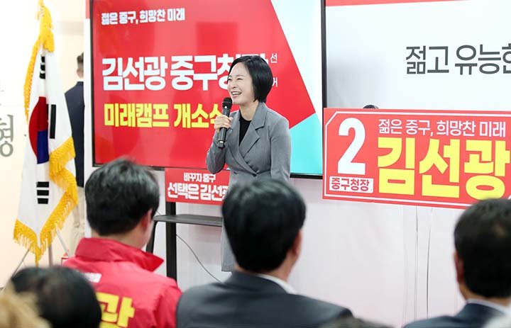 발언 말미에는 “김선광이 나간다, 선거는 지금부터다, 빛나는 중구를 위해 파이팅”을 외치며 지지자들과 함께 구호를 제창했다.