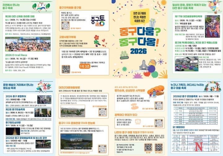 중구는 ‘2026 중구 축제 통합 홍보 계획’을 수립하고 슬로건 ‘중구다움? 중구다옴!’을 내세워 축제 브랜드화를 추진한다고 밝혔다.