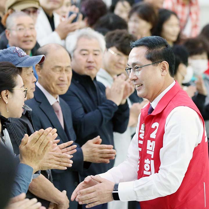 이날 현장에는 지지자들이 몰리며 박희조 예비후보를 향한 악수 행렬이 이어졌다. 박희조 구청장은 참석자들과 손을 맞잡으며 재선 도전에 대한 의지를 드러냈다.
