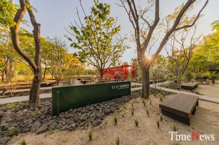 ‘엘리프 가든’은 ‘사람과 사람, 사람과 자연, 사람과 공간의 조화’를 주제로 조성된 힐링형 정원이다. 계룡건설의 주거 브랜드 ‘엘리프’가 추구하는 삶의 가치와 관계의 확장을 공간으로 구현한 것이 특징이다.