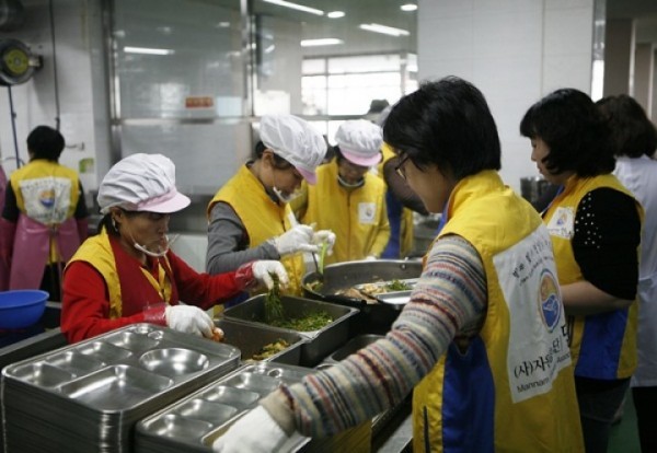 자원봉사자들은 이날 식당을 찾은 어르신들의 건강과 안부를 물으며 정성스럽게 준비한 음식을 배급했다. (사) 자원봉사단 만남 군산지부는 다년간 꾸준히 본 경로식당을 방문하며 어르신에게 식사대접을 하고 있다.자원봉사단 만남 군산지부가 9일 군산경로식당에서 배식봉사를 했다. (사진=만남 군산지부)