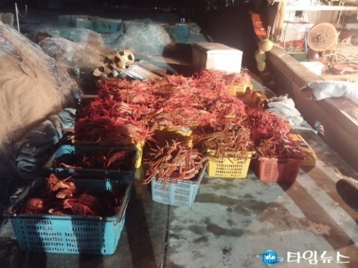 [영덕타임뉴스=백두산기자]포항해양경비안전서(서장 김인창)는 허용어획 할당을 받지 않고 붉은대게 1,800여마리를 불법포획 한 혐의(수산자원관리법 위반)로 김모(54)씨를 검거하여 조사하고 있다고 12일 밝혔다.