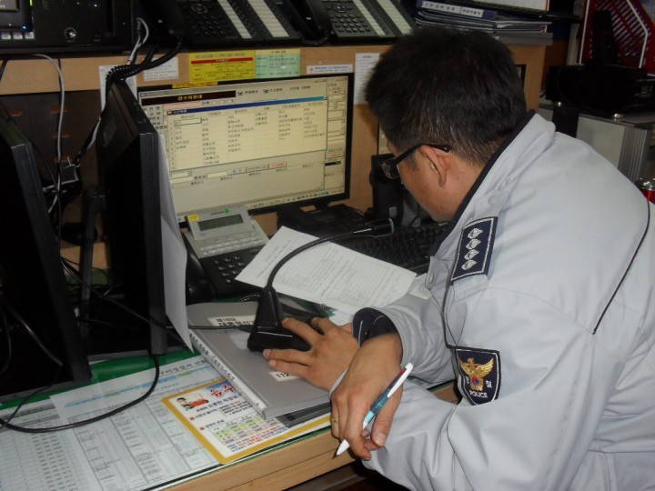 | 발로 스위치 작동 | 발신자 정보 자동발신 | 무선 지령 출동 | 현장 도착 및 검거 |