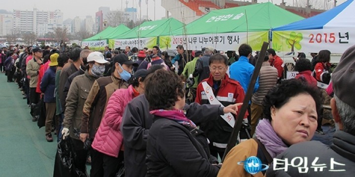 이날 시민에게 꾸지뽕나무, 밤나무, 매실나무, 자두나무, 살구나무 등 유실수와 산수유, 산딸나무 등의 꽃나무 5400본과 관상용 소나무 용기묘를 무료로 제공했다.