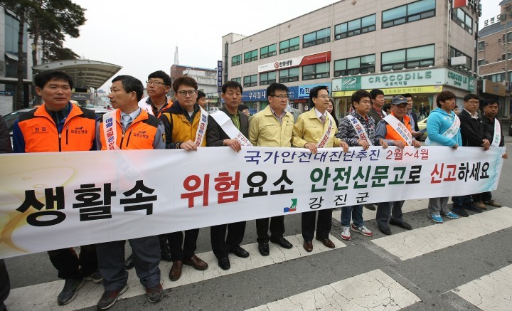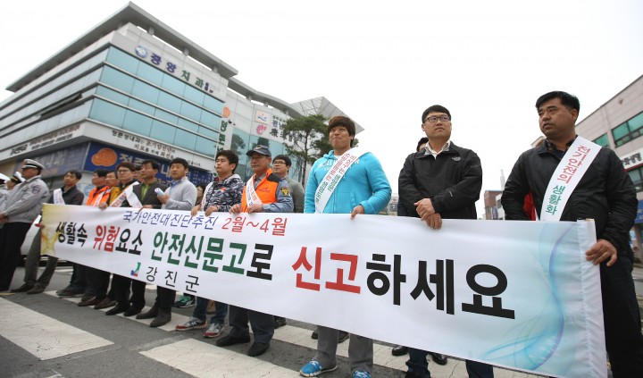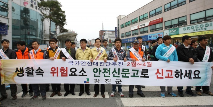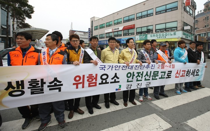전남 강진군이 주관한 이번 행사는 국가적 안전사고 발생에 따른 군민들의 불안감을 해소하고 안전에 대한 관심도를 높이기 위해 실시됐으며 우리주변의 위험요소인 산사태, 산불, 화재, 교통사고 등에 대한 주민들의 안전사고 예방 캠페인을 펼쳤다.