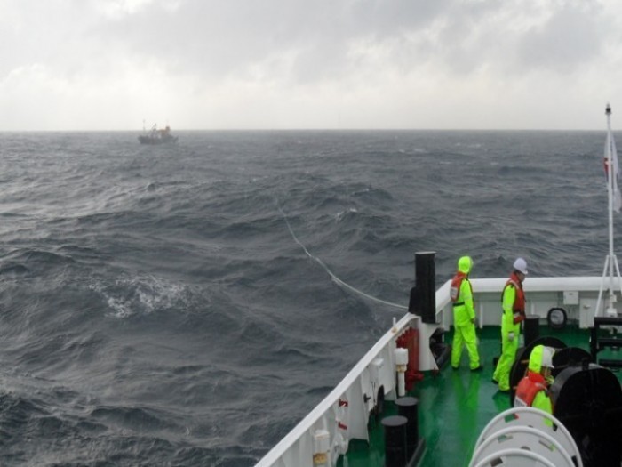 [영덕타임뉴스=백두산기자]포항해양경비안전서(서장 김인창)는 13일 21:52분경 감포 동방 30마일 해상에서 클러치 고장으로 항해 불가한 어선 S호(69톤, 강구선적, 통발, 승선원13명)를 포항어업정보통신국 경유 포항서 상황센터에 신고 접수 후 곧 바로 출동해 구조했다.