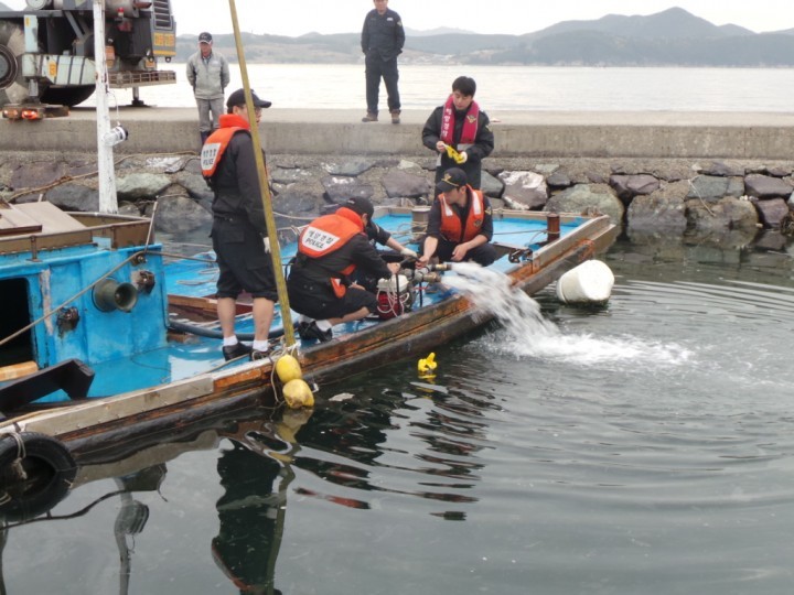 이에 통영해경 122구조대를 동원 침몰선박에 잠수하여 선박 연료 배출구를 긴급 봉쇄하였으며, 경비정 및 순찰정 동원하여 암차이용 방제작업을 실시하였다.