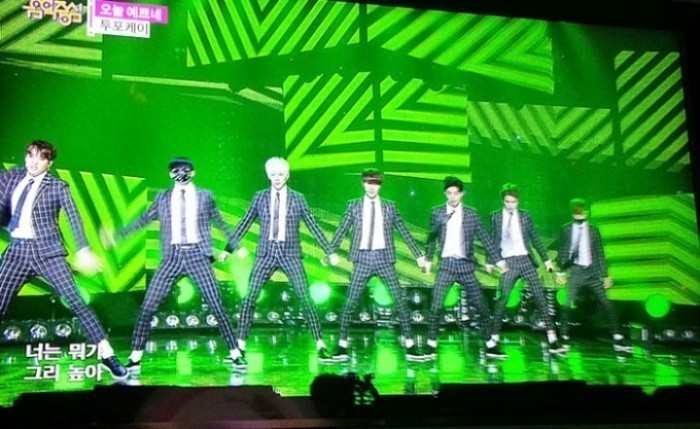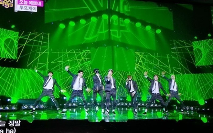 이날 투포케이는 윈도우 체크가 들어간 수트를 입고 섹시함과 절제미를 갖춘 카리스마로 여심을 흔들었다. 중독성 강한 트랩이디엠 멜로디에 개성 있는 ‘네이네이’ 춤이 특징인 투포케이 '오늘 예쁘네'는 4월 13일 공개된 3집 타이틀곡으로 리더 코리가 작사, 작곡, 편곡하고 멤버 대일이 안무를 기획, 여기에 멤버 정욱과 대일이 랩 메이킹까지 덧붙여 온전히 투포케이 멤버들의 힘으로 완성해낸 곡으로 화제를 모은 바 있다. 한편 이날 음악중심에는 EXID, 니엘, M&D, 블락비 바스타즈, 달샤벳, 미쓰에이, FT아일랜드, 케이윌, 레드벨벳, 언터쳐블, 러블리즈, 크레용팝, 디아크, 신보라, NC.A, JJCC, 신지수, 박시환이 출연했다.