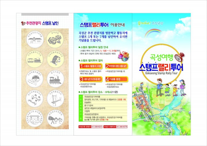이번 ‘스탬프 랠리 투어’는 관광객들(곡성군민 제외)에게 곡성군 관내 추천 관광지 8개소(11곳)를 돌면서 스탬프를 찍고 기념품을 받을 수 있도록 한 행사다.