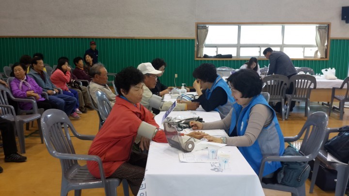 ※ 사진설명 1~2. 경희의료원ㆍ국민건강보험공단 무료 의료봉사활동이 지난 25일 칠량면황금체육관에서 열린 가운데, 칠량면민들이 건강상담과 진료를 받고 있다.