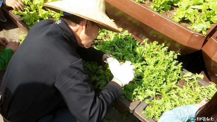 3월에 씨앗을 뿌려 4월 말 첫 수확을 시작으로 1주일에 2회 약 45kg의 상추, 쑥갓, 치커리, 케일, 시금치, 아욱 등 친환경 채소를 수확하고 있다. 하늘채소는 햇살, 바람, 물, 농부의 정성만 먹고 자라 연하고 고소해 단골손님이 있을 정도이다. 친환경채소는 자원봉사자와 지역공동체 일자리사업으로 운영되며 저소득층 가정에 무료로 전달하고 남은 채소는 주민에게 판매하여 이웃돕기 기금으로 사용한다. 씨를 뿌리고 키우는 것부터 수확하는 것까지 손수 도맡아 채소를 기르는 자원봉사자 김태봉어르신(79세)은 시금치를 뽑고, 콩나물을 담으며 “된장국 끓일 때 이 시금치랑 콩나물을 같이 넣어 끓여봐. 그보다 더 좋은 건강식은 없어, 남의 손 가는 게 못미더워서 일일이 내손으로 하니 힘들 때도 있지만 정성껏 키워 다들 맛있다고 해주니 뿌듯하고 또 좋은 일에 쓰이니 더할 나위 없지"라고 말씀하시며 너털웃음을 지으신다. 하늘텃밭에서 재배한 친환경채소 판매수익금은 지난해처럼 송내1동 주민자치회(회장 김영규)의 이웃돕기 기금으로 연말에 생활이 어려운 이웃을 위해 쓰일 예정이다.