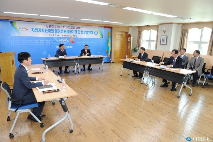 부천시(시장 김만수)는 14일 시청 만남실에서 환경 분야 전반에 걸쳐 시민들이 안심하고 생활할 수 있는 환경을 조성하기 위해 환경전문공공기관인 한국환경공단과 업무협약을 체결했다. 주요 협력 분야로는 기후변화 대응 및 온실가스 감축, 선진대기환경 체계 구축 및 대기질 개선, 환경에너지시설·환경 인프라 구축, 하천수질개선 및 토양오염 관리 분야 등이다. 특히, 도로재 비산먼지 대기질 개선사업 분야는 계절별, 도로 특성별, 주변 조건별에 따른 측정·분석을 통해 부천시 주요도로 14개소 36.4km 구간에 대해 맞춤형으로 청소차량을 운영지원 하여 효율적인 미세먼지 저감을 유도할 계획이다. 또한 부천시에서 위탁 운영하고 있는 시립노인요양병원 내에 실내공기질 자동측정기 1대와 실시간 자동표출 전광판을 운영하여 어르신들의 건강 개선 효과에 크게 이바지 할 것으로 보인다.아울러 전국의 공공버스터미널 최초로 부천 소풍터미널 실내공기질 측정결과를 터미널을 이용하는 시민들에게 공개하여 시민 홍보 및 시민의 환경 알권리를 충족시킬 계획이다. 시 관계자는“환경전문공공기관과 지방자치단체 간 업무협약으로 실내공기질 측정망 등 국비(6억원) 확보로 시 재정에 기여하고, 한국환경공단과의 상호 업무협력으로 친환경 녹색도시 건설에 더욱 박차를 가할 것으로 기대한다"고 전했다.