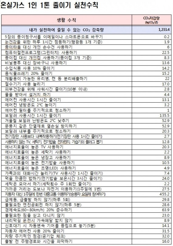 정부는 기후변화의 원인물질인 온실가스를 줄여 전세계 기후변화에 대응하기 위해 2020년까지 우리나라 온실가스를 2억 3,300만톤(예상배출량의 30%) 감축하기로 ‘국가 온실가스 감축 국제공약 이행’을 발표한 바 있다.이에 따라 환경부와 대구시는 감축목표 2억 3,300만 톤 중 19%인 4,400만 톤 정도는 일상생활에서의 에너지 절약 실천 등으로 줄일 수 있다고 보고 한국기후․환경네트워크, 전국 지속가능발전협의회 등 시민단체와 함께 지난해부터 온실가스 줄이기 실천운동을 추진해 오고 있으며, 이를 확산하기 위한 방안의 하나로 이번 대형 조형물을 전시하게 되었다고 했다.온실가스 줄이기 실천운동은 외출 시 사용하지 않는 전원을 끄거나 코드 뽑기, 대중교통 이용, 쿨맵시·온맵시 착용하기 등이며, 이번 조형물을 통해 국민 1인당 온실가스 배출량을 쉽게 가늠해 볼 수 있도록 보여줌으로써 국민 개개인의 온실가스 줄이기에 대한 참여와 실천을 이끌어 낼 것으로 기대된다.대구시 김부섭 녹색환경국장은 “온실가스 1인 1톤 줄이기 조형물 전시가 시민들이 기후변화의 심각성을 인식하고 작은 것부터 실천하는 범시민 운동으로 확산될 수 있는 계기가 되기를 바란다"고 말했다.
