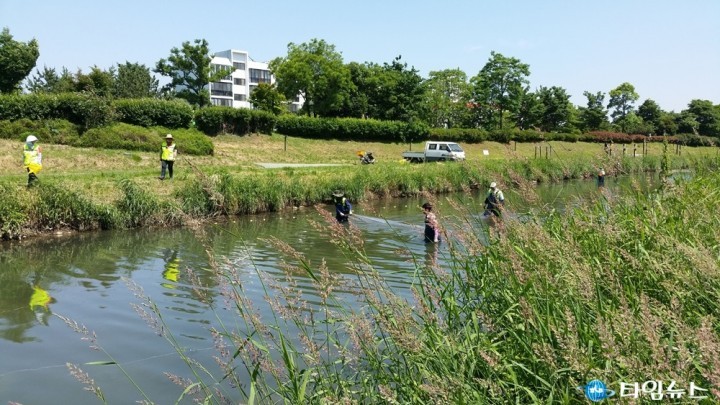 [김해=조병철기자]김해시는 『생물다양성의 날』(5월 22일)을 맞아 수생태계 건강성 증진을 위해 5월 21일 해반천 일원에서 큰입배스, 블루길 등 생태계 교란 외래어종 퇴치활동을 전개했다