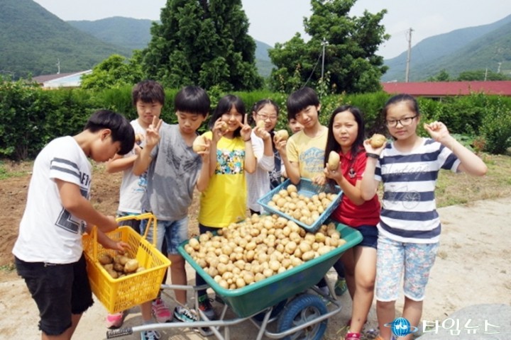 학생들은 그동안 학교 텃밭에 씨감자를 심고 틈틈이 잡초 제거와 돌 고르기 등으로 가꿔온 노력의 결실인 감자를 캐며 즐거워했다. 이날 감자를 직접 쪄서 선생님, 친구들과 함께 나누어 먹으며 자연에서 얻은 우리 먹거리의 소중함을 느꼈다.