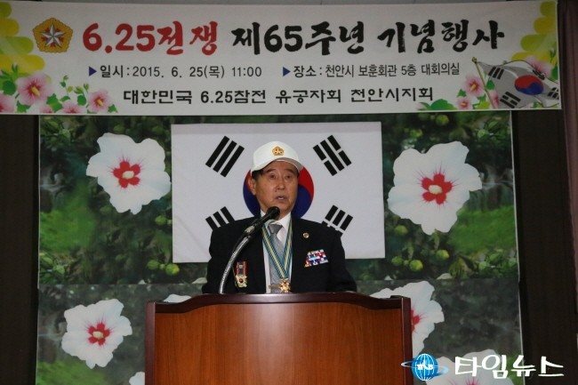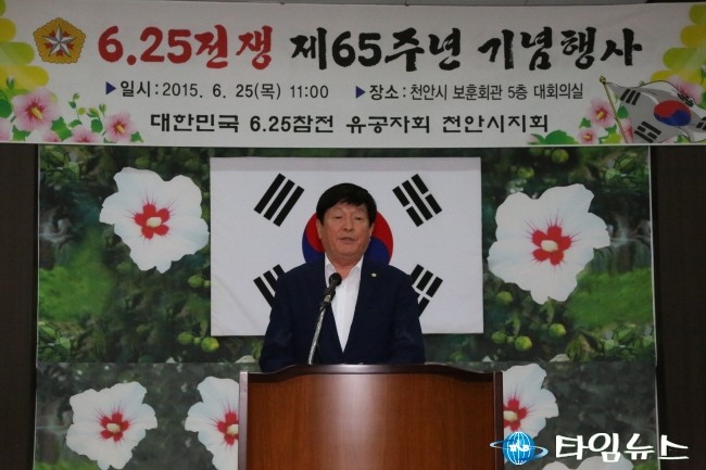 6.25전쟁 65년 기념행사에서 주명식 천안시의회 의장이 격려의 말을 하고 있다. [사진=최영진기자]
