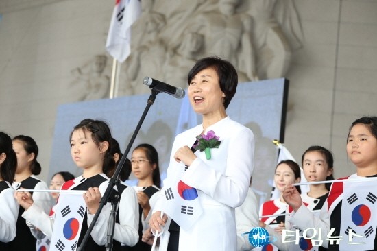윤주경 독립기념관장과 공연단의 모습 [사진=최영진기자]