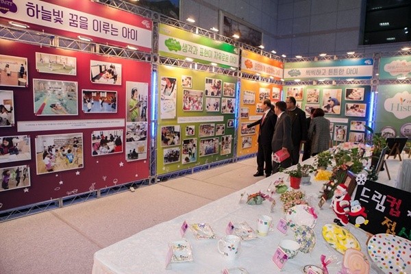 수련관 1층에는 지난 1년 동안 드림스타트를 통해 제공된 신체·건강, 정서·행동, 인지·언어, 특기적성, 가족 관계개선 등 90여 종의 다양한 프로그램 운영 사진을 비롯하여 공예품, 각종 자격증, 미술품 등 아이들이 참여한 프로그램 성과물 150여 점 등이 다채롭게 전시됐다.